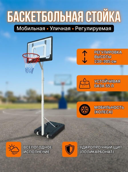 Мобильная баскетбольная стойка Proxima S034-305 - ОписаниеСомневаетесь? - Посмотрите рейтинг ТОП-10 по категории «Баскетбол»Баскетбольная мобильная стойка предназначена для домашнего использования (на улице и в помещениях). Материалы, применяемые для изготовления стойки, устойчивы к различным атмосферным явлениям и обладают повышенной износоустойчивостью.