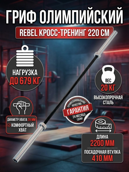 Гриф для кросс-тренинга REBEL до 679 кг - БрендСтрана бренда: КНР Премиальность бренда:Гриф для кросс-тренинга REBEL до 679 кг - Характеристики