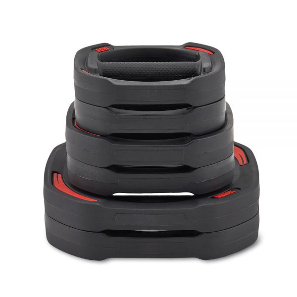 Диски, входящие в комплект, выполнены из чугуна и покрыты полиуретаном - материалом, который не имеет запаха, устойчив к износу и царапинам, обеспечивая долговечность и сохранение внешнего вида даже при интенсивных тренировках. Размеры дисков: 5 кг - 26х26х3,5 см, 2,5 кг - 20х20х3,4 см, 1 кг - 18х17х3,4 см. Диаметр рукоятки у дисков - 26 мм, что позволяет использовать их как отдельные утяжелители для различных упражнений и расширяет возможности тренировок.