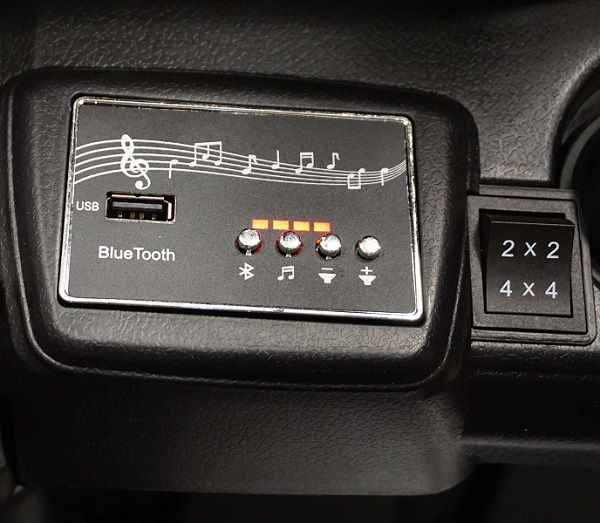Свет передних и задних фар - отличная видимость машинки в темное время суток. Сидение оборудовано 4-х точечным ремнем безопасности. Приборная панель оснащена неоновой подсветкой. Подключайте смартфон, планшет, МР3 плеер через разъемы USB-вход, mp3-вход и слушайте любимую музыку во время катания или простоя.