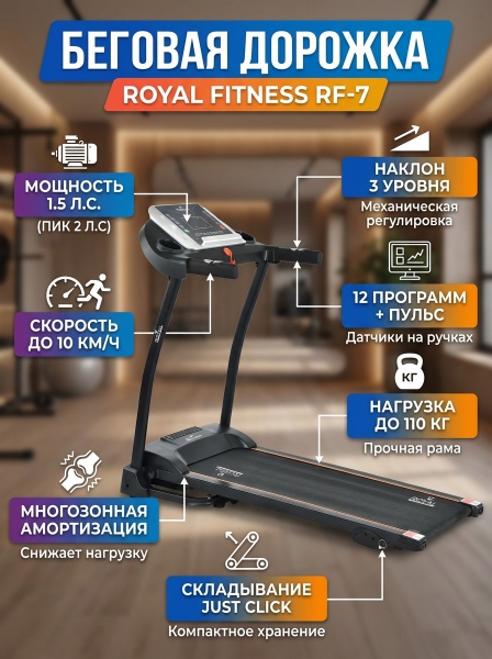 Электрическая беговая дорожка Royal Fitness RF-7 - БрендСтрана бренда: КНР Премиальность бренда:Электрическая беговая дорожка Royal Fitness RF-7 - Характеристики