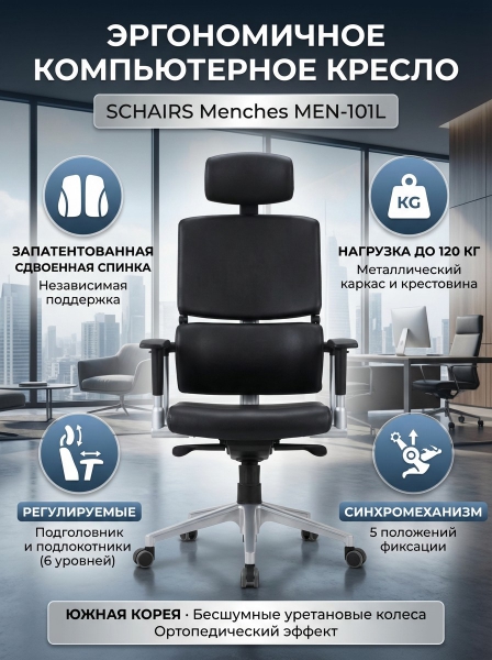 Офисное кресло Schairs Menches MEN-101L экокожа - Обзор ТОП-10 лучших ортопедических кресел 2025 🏆: Обзор и рейтинг
