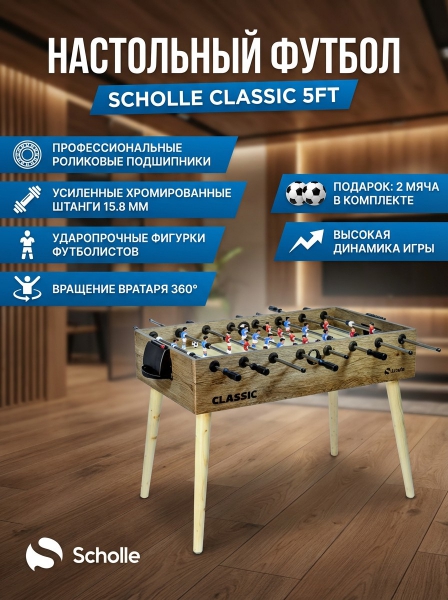 Настольный футбол Scholle Classic 5FT - ДоставкаДоставка по Санкт-Петербургу: бесплатно, 2-3 дня Доставка по России: стоимость уточняйте у оператора. Настольный футбол Scholle Classic 5FT - Отзывы0.0