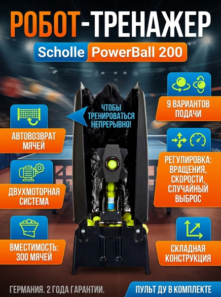 Робот для настольного тенниса Scholle PowerBall 200 - ДоставкаДоставка по Санкт-Петербургу: бесплатно, 2-3 дня Доставка по России: стоимость уточняйте у оператора. Робот для настольного тенниса Scholle PowerBall 200 - Отзывы0.0