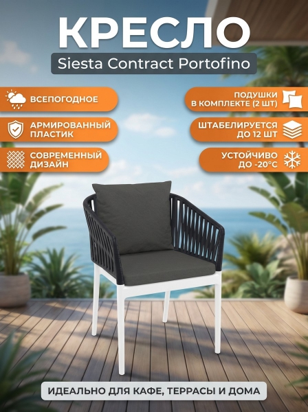 Кресло пластиковое с подушками Siesta Contract Portofino, белый, черный, темно-серый