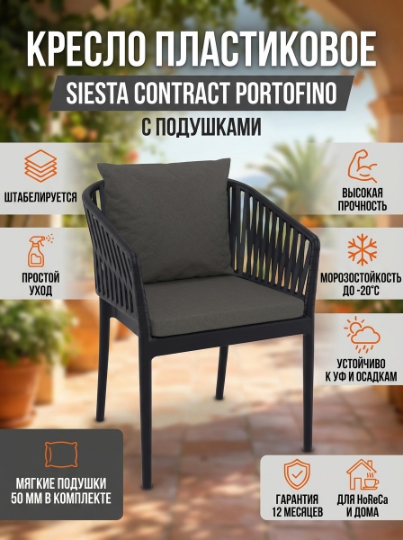 Кресло пластиковое с подушками Siesta Contract Portofino, чёрный, тёмно-серый - Преимущества