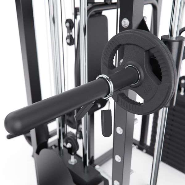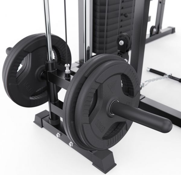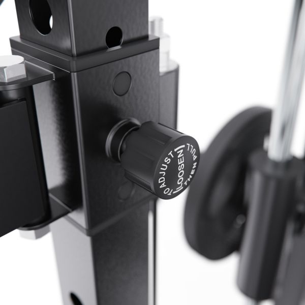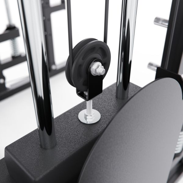 Штанга регулируется по высоте с помощью удобных рычагов и может фиксироваться на 11 уровнях, что позволяет точно настроить тренажёр под рост пользователя и конкретное упражнение. Комплекс можно совмещать со скамьёй для жима, что значительно расширяет функциональность и делает возможным выполнение классических жимовых упражнений.