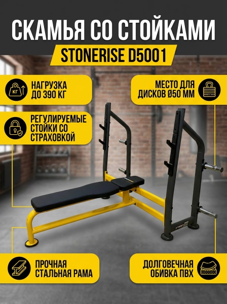 Скамья со стойками для жима STONERISE D5001 - ДоставкаДоставка по Санкт-Петербургу: бесплатно, 2-3 дня Доставка по России: стоимость уточняйте у оператора. Скамья со стойками для жима STONERISE D5001 - Отзывы0.0