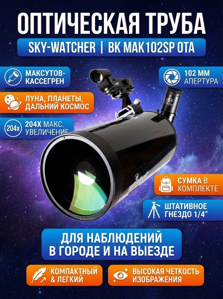 Труба оптическая Sky-Watcher BK MAK102SP OTA - ДоставкаДоставка по Санкт-Петербургу: бесплатно, 2-3 дня Доставка по России: стоимость уточняйте у оператора. Труба оптическая Sky-Watcher BK MAK102SP OTA - Отзывы0.0