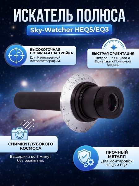Искатель полюса Sky-Watcher для монтировок телескопа HEQ5/EQ3 - ДоставкаДоставка по Санкт-Петербургу: бесплатно, 2-3 дня Доставка по России: стоимость уточняйте у оператора. Искатель полюса Sky-Watcher для монтировок телескопа HEQ5/EQ3 - Отзывы0.0