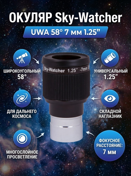 Окуляр Sky-Watcher UWA 58° 7 мм 1.25” - ДоставкаДоставка по Санкт-Петербургу: бесплатно, 2-3 дня Доставка по России: стоимость уточняйте у оператора. Окуляр Sky-Watcher UWA 58° 7 мм 1.25” - Отзывы0.0