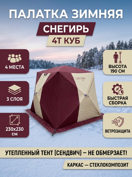 Зимняя палатка с двумя входами Снегирь 4Т - БрендСтрана бренда: Россия Страна производства: Россия Премиальность бренда:Зимняя палатка с двумя входами Снегирь 4Т - Характеристики