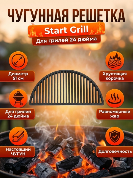 Чугунная решетка Start Grill для грилей 24 дюйма - Преимущества