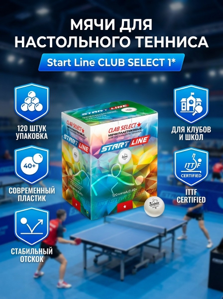 Мячи для настольного тенниса Start Line Club Select 1* New (120 шт.) - БрендStart Line – это известный во всем мире производитель оборудования для здоровья и спорта, каждый экземпляр которого сопровождается гарантией качества.
