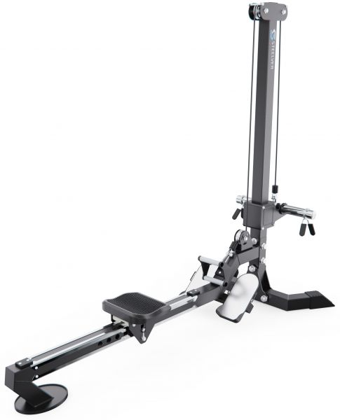 Тренажёр рассчитан на пользователей весом до 250 кг, что делает его универсальным решением для спортсменов разного уровня подготовки. Прочная стальная рама с профилем 75 х 75 х 3 мм обеспечивает высокую устойчивость и долговечность конструкции. Слайд длиной 104,5 см обеспечивает естественную амплитуду движений и комфорт при каждом гребке.