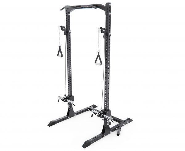 Встроенный кроссовер расширяет функциональность тренажера, позволяя прорабатывать все основные группы мышц. Кроме того, с одной стороны рамы предусмотрено специальное отверстие для установки грифа, которое позволяет использовать раму как Лэндмайн, выполняя жим и другие упражнения с естественной амплитудой движения.