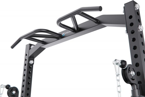 Прочная стальная рама выполнена из профиля 75 х 75 х 3 мм, что гарантирует устойчивость, долговечность и стабильность конструкции. Длина троса составляет 171,8 см, обеспечивая комфортную амплитуду движений при выполнении упражнений. Ширина турника — 108,4 см, что способствует удобному и безопасному хвату при тренировках. Версия с нержавеющей сталью отличается плавным и лёгким ходом блоков кроссовера и повышенной износостойкостью, делая тренировки более комфортными и долговечными.
