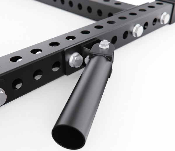 Максимальная нагрузка на узел для подвешивания дисков составляет 150 кг. Для надежной и безопасной фиксации весов предусмотрен пружинный зажим, который упрощает работу с нагрузкой и повышает комфорт во время тренировок.