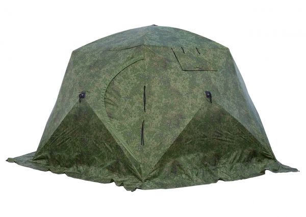 Модель имеет стеклопластиковый каркас с добавлением карбона и синтетический не продуваемый тент (оксфорд 240PU). Внутренняя подкладка выполнена из термостойкой ткани, стеганного полотна и синтепона. Дополнительная прослойка пространства позволяет создавать воздушную подушку для длительного сохранения тепла внутри.