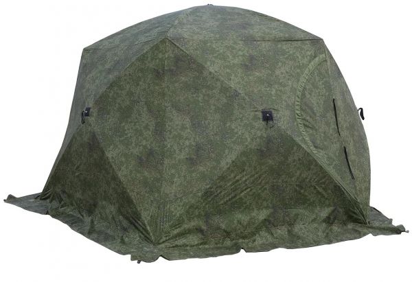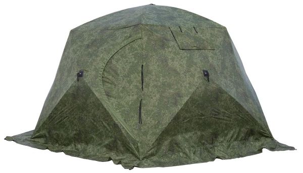 Палатка-ШАТЁР СТЭК ЧУМ 3Т (трехслойная) пиксель с навесом + сетка - ОписаниеПалатка ЧУМ 3 от уральского производителя – это идеальный выбор для зимней рыбалки. Она предназначена для комфортного отдыха четырех и более человек в самых сложных погодных условиях. Модель имеет стеклопластиковый каркас с добавлением карбона и синтетический не продуваемый тент (оксфорд 240PU). Внутренняя подкладка выполнена из термостойкой ткани, стеганного полотна и синтепона. Дополнительная прослойка пространства позволяет создавать воздушную подушку для длительного сохранения тепла внутри. Конструкция имеет вывод под печную трубу, что дает дополнительные возможности для обогрева в холодное время года. Также есть москитная сетка, а значит, палатка подойдет и для летних походов. Палатка оборудована двумя входами, что удобно в случае отдыха семьей или компанией. Она многофункциональная, комфортная, просто раскладывается. В собранном виде отличается компактными размерами: 180х45х30 см.