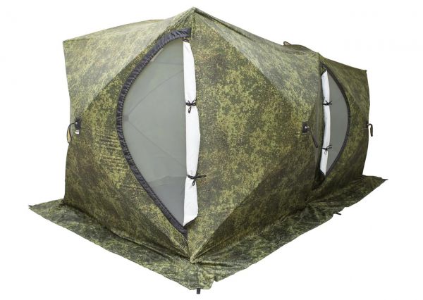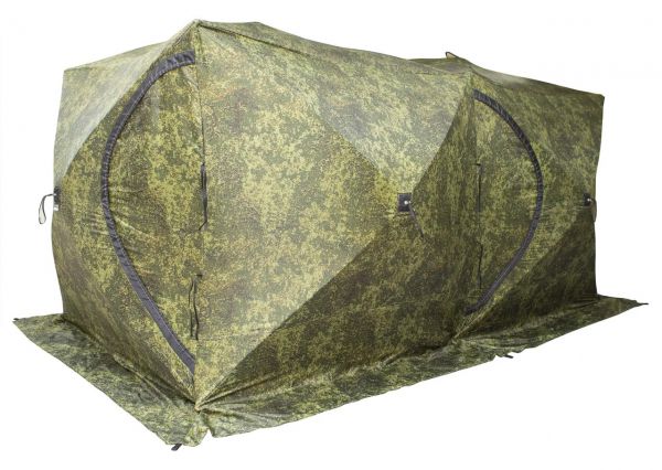 Палатка СТЭК ДУБЛЬ-3Т (трехслойная) пиксель с навесом + сетка - ОписаниеКаркас изготовлен из cтеклопластика с добавлением карбона. Тент изготовлен из синтетической непродуваемой ткани (оксфорд 240PU). Внутренний тент стеганое полотно из синтепона и подкладочной ткани таффета (термостëжка). Вывод под печную трубу: ткань негорючая, ветро- паро - влагозащитная Оксфорд и термостёжка не склеены и не стеганы между собой, что позволяет создавать пространство для создания воздушно - тепловой подушки. Так же это позволяет удалять образующий конденсат и просушивать палатку.