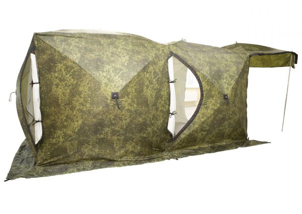 Палатка СТЭК ДУБЛЬ-3Т (трехслойная) пиксель с навесом + сетка