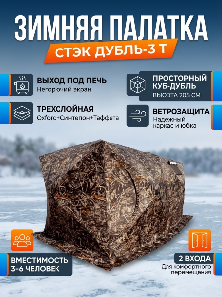 Палатка СТЭК ДУБЛЬ-3 Т (трехслойная) камыш - ДоставкаДоставка по Санкт-Петербургу: бесплатно, 2-3 дня Доставка по России: стоимость уточняйте у оператора. Палатка СТЭК ДУБЛЬ-3 Т (трехслойная) камыш - Отзывы0.0
