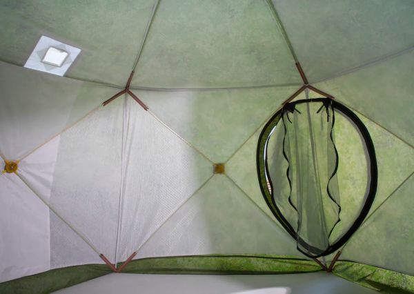 Модель имеет стеклопластиковый каркас с добавлением карбона и синтетический не продуваемый тент (оксфорд 240PU). Внутренняя подкладка выполнена из термостойкой ткани, стеганного полотна и синтепона. Дополнительная прослойка пространства позволяет создавать воздушную подушку для длительного сохранения тепла внутри.