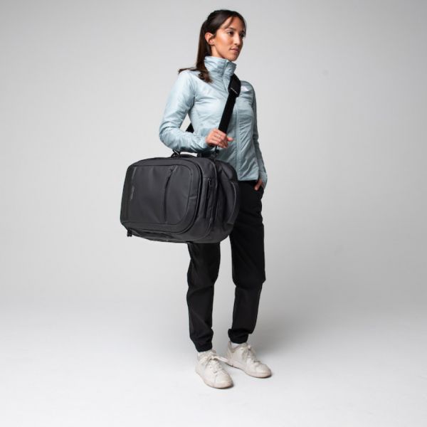 Рюкзак Sympl Travel Pack 35L, (Carbonate) черный - ОписаниеРюкзак Sympl Travel Pack 35L имеет 3 варианта переноски, которые позволяют легко путешествовать, адаптируясь к вашей жизни в движении (рюкзак, спортивная сумка, портфель). Избегайте проверки сумки и прохождения контрольно-пропускных пунктов, поскольку это одобрено TSA для ручной клади. Основное отделение в виде раскладушки обеспечивает легкий доступ к верхней загрузке, а расширяемый карман обеспечивает организацию и доступность всех ваших технических принадлежностей. Рюкзак Sympl Travel Pack 35L имеет отделение для ноутбука диагональю до 17 дюймов.