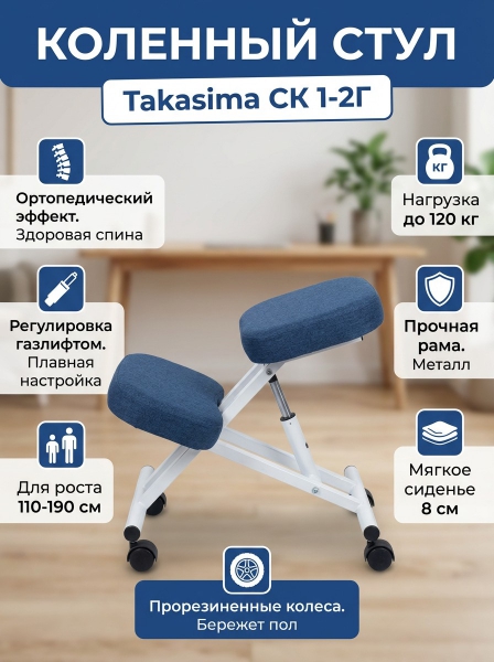 Коленный стул Takasima СК 1-2Г с газлифтом (белая рама) - Обзор ТОП-10 лучших ортопедических кресел 2025 🏆: Обзор и рейтинг