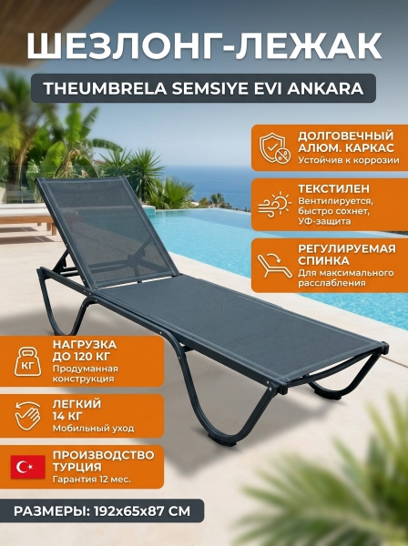 Шезлонг-лежак THEUMBRELA SEMSIYE EVI Ankara металл антрацит