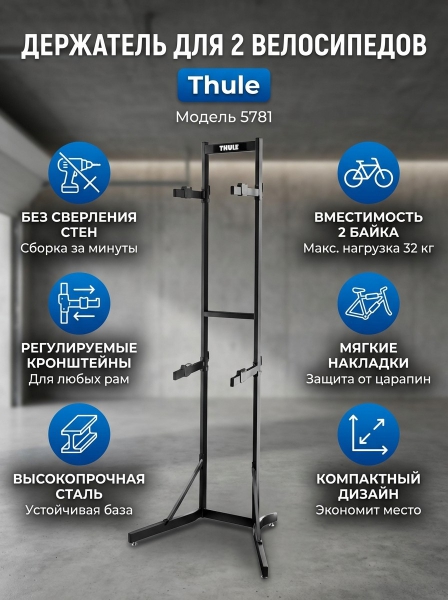 Держатель для хранения 2-х велосипедов Thule 578101 - ДоставкаДоставка по Санкт-Петербургу: бесплатно, 2-3 дня Доставка по России: стоимость уточняйте у оператора. Держатель для хранения 2-х велосипедов Thule 578101 - Отзывы0.0