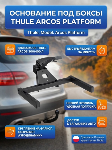 Основание под боксы Thule Arcos Platform - ОписаниеПлатформа Thule Arcos необходима для монтажа грузового бокса на фаркоп Thule Arcos.