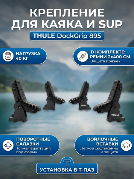 Крепление для перевозки каяка и доски для сапсерфинга Thule DockGrip 895 - ДоставкаДоставка по Санкт-Петербургу: бесплатно, 2-3 дня Доставка по России: стоимость уточняйте у оператора. Крепление для перевозки каяка и доски для сапсерфинга Thule DockGrip 895 - Отзывы0.0