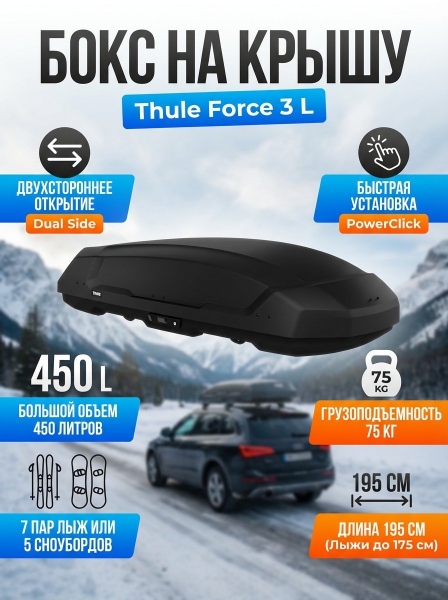 Бокс Thule Force 3 L, черный, dual side, aeroskin, 450 л - ДоставкаДоставка по Санкт-Петербургу: бесплатно, 2-3 дня Доставка по России: стоимость уточняйте у оператора. Бокс Thule Force 3 L, черный, dual side, aeroskin, 450 л - Отзывы0.0