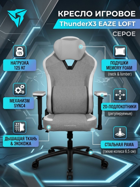 Кресло компьютерное игровое ThunderX3 Eaze Loft - ДоставкаДоставка по Санкт-Петербургу: бесплатно, 2-3 дня Доставка по России: стоимость уточняйте у оператора. Кресло компьютерное игровое ThunderX3 Eaze Loft - Отзывы0.0
