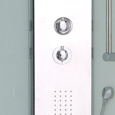 В набор оборудования входит ручной душ из лейки на гибком шланге, верхний душ (тропический ливень), радиоприемник и множество приятных аксессуаров.