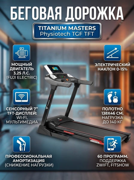 Беговая дорожка для дома Titanium Masters Physiotech TGF TFT - ДоставкаДоставка по Санкт-Петербургу: бесплатно, 2-3 дня Доставка по России: стоимость уточняйте у оператора. Беговая дорожка для дома Titanium Masters Physiotech TGF TFT - Отзывы0.0