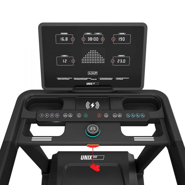 Беговая дорожка UNIX Fit MX-970 (версия 2.0) - ОписаниеСомневаетесь? - Посмотрите рейтинг ТОП-10 по категории «Беговые дорожки»MX-970 — это инновационная электрическая беговая дорожка премиум-класса с беспроводной зарядкой для дома, созданная специально для тех, кто ценит эффективность тренировок, удобство эксплуатации и современные технологии. Этот тренажёр идеально подойдёт как новичкам, так и опытным спортсменам благодаря своей универсальности и множеству полезных функций.
