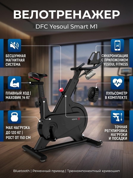 Велотренажер DFC Yesoul Smart M1 BLACK с пульсометром