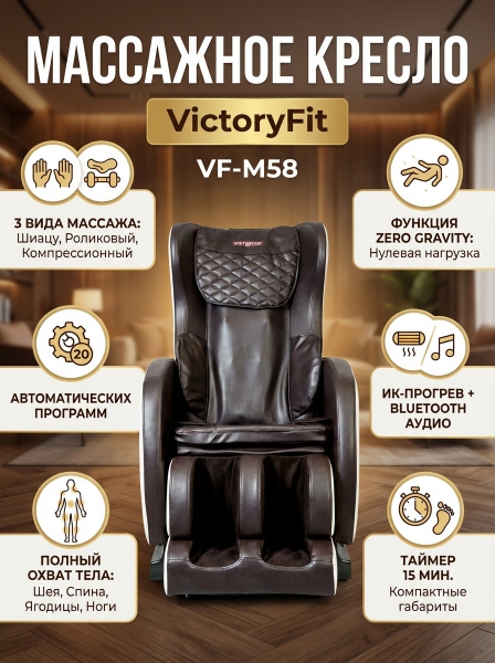 Массажное кресло VictoryFit VF-M58 - ДоставкаДоставка по Санкт-Петербургу: бесплатно, 2-3 дня Доставка по России: стоимость уточняйте у оператора. Массажное кресло VictoryFit VF-M58 - Отзывы0.0