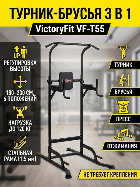 Напольный турник-брусья VictoryFit VF-T55 - ДоставкаДоставка по Санкт-Петербургу: бесплатно, 2-3 дня Доставка по России: стоимость уточняйте у оператора. Напольный турник-брусья VictoryFit VF-T55 - Отзывы5.0