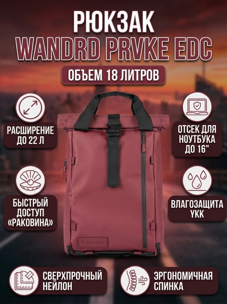 Рюкзак WANDRD PRVKE EDC, бордовый, 18л. - ДоставкаДоставка по Санкт-Петербургу: бесплатно, 2-3 дня Доставка по России: стоимость уточняйте у оператора. Рюкзак WANDRD PRVKE EDC, бордовый, 18л. - Отзывы0.0