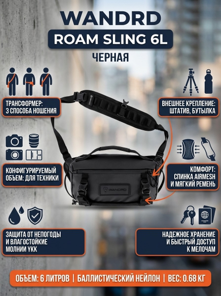 Сумка WANDRD Roam Sling 6L черный - ДоставкаДоставка по Санкт-Петербургу: бесплатно, 2-3 дня Доставка по России: стоимость уточняйте у оператора. Сумка WANDRD Roam Sling 6L черный - Отзывы0.0