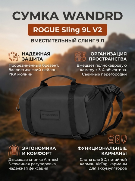 Сумка WANDRD ROGUE Sling 9L V2, черный, 9 л. - ДоставкаДоставка по Санкт-Петербургу: бесплатно, 2-3 дня Доставка по России: стоимость уточняйте у оператора. Сумка WANDRD ROGUE Sling 9L V2, черный, 9 л. - Отзывы0.0