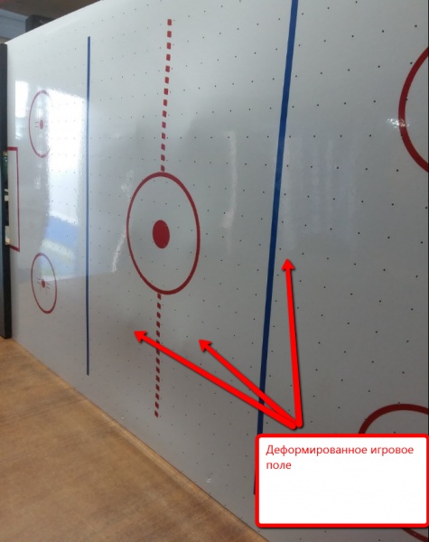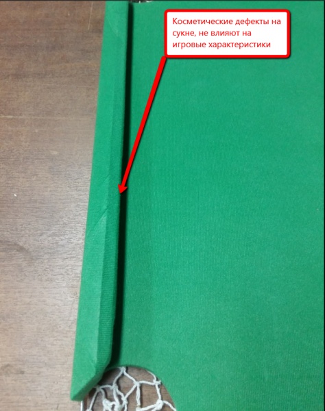 Причина уценки - косметические дефекты сукна и деформированное игровое поле аэрохоккея.