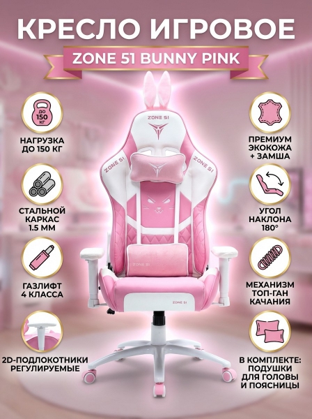 Кресло компьютерное игровое Zone 51 Bunny Pink - ДоставкаДоставка по Санкт-Петербургу: бесплатно, 2-3 дня Доставка по России: стоимость уточняйте у оператора. Кресло компьютерное игровое Zone 51 Bunny Pink - Отзывы0.0