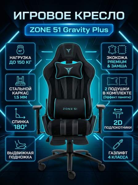 Геймерское кресло Zone 51 Gravity Plus Black - Преимущества