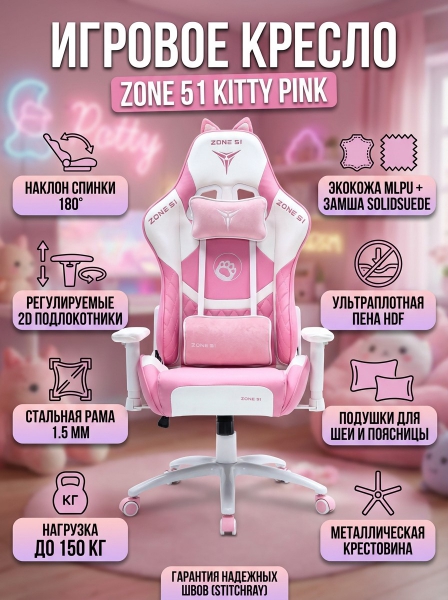 Игровое компьютерное кресло Zone 51 Kitty Pink - ДоставкаДоставка по Санкт-Петербургу: бесплатно, 2-3 дня Доставка по России: стоимость уточняйте у оператора. Игровое компьютерное кресло Zone 51 Kitty Pink - Отзывы0.0