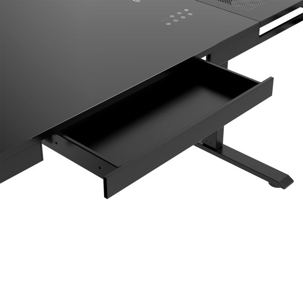 ТВОЯ ТЕРРИТОРИЯ ПРЕВОСХОДСТВА e-Artorias – это не просто рабочий стол. Это философия осознанного выбора, где каждая деталь продумана до мелочей. Созданный для тех, кто отвергает компромиссы между функциональностью и эстетикой, этот стол становится центром твоей вселенной: он подойдет перфекционистам, ценящим порядок и стиль; профессионалам, проводящим за столом долгие часы; геймерам, ищущим не просто игровую станцию, а универсальное решение. Это выбор тех, кто понимает: истинное превосходство не требует демонстрации – оно ощущается в каждой детали. ЗАБУДЬ О КОМПРОМИССАХ Электрическая регулировка с 3 ячейками памяти мгновенно подстраивается под твой ритм жизни: от утренней работы стоя до вечерних игровых марафонов сидя. Цифровой дисплей показывает точную высоту в реальном времени в сантиметрах и дюймах, давая тебе полный контроль над эргономикой. Умная защита от столкновений автоматически останавливает движение при обнаружении препятствий, а расширенные настройки позволяют откалибровать стол именно под твои потребности. Твой комфорт на высоте современных технологий, которые работают незаметно, но безупречно. ПРОСТРАНСТВО БЕЗ ГРАНИЦ 70 см глубины и выбор между 130 и 160 см ширины – это территория твоего превосходства, где помещается все необходимое для максимальной продуктивности. Премиальное закаленное стекло толщиной 3 мм меняет правила игры: идеальное скольжение сенсора позволяет забыть о коврике для мыши. Точность каждого движения сохраняется на годы, а гладкая текстура устойчива к царапинам и легко очищается от следов. Это не просто рабочая поверхность – это твой командный центр, где технологии встречаются с безупречным стилем и тактильным совершенством. НЕПОКОЛЕБИМАЯ СТАБИЛЬНОСТЬ 2-миллиметровая стальная рама с прецизионной роботизированной сваркой и многослойным порошковым покрытием – это фундамент твоей продуктивности, рассчитанный на годы интенсивного использования. Никаких колебаний, скрипов или люфтов, только абсолютная устойчивость при любых нагрузках и на любой высоте. Широкие ножки с регулируемыми опорами обеспечивают идеальную стабильность даже на неровных поверхностях. Это конструкция, которая не просто держит столешницу: она создает ощущение надежности, позволяя тебе полностью сосредоточиться на работе или игре. ХОЛОДНЫЙ РАСЧЕТ Перфорированные стальные панели – это не просто элемент дизайна, а результат тщательного инженерного расчета. Специальная система отверстий обеспечивает оптимальную циркуляцию воздуха, создавая естественную вентиляцию для твоего ПК и другого оборудования, размещенного под столом или на столе. Это предотвращает перегрев компонентов и продлевает срок службы твоей техники. ПОРЯДОК – ЭТО СИЛА Скрытая система кабель-менеджмента с вместительной фетровой корзиной под столешницей убирает хаос проводов, превращая потенциальный визуальный шум в организованную структуру. Провода больше не путаются под ногами и не портят эстетику пространства. Выдвижной ящик в центральной части стола, расположенный в зоне прямого доступа, бережно хранит то, что должно быть под рукой: телефон, блокнот, ручки, наушники и другие важные мелочи. Ничего лишнего на поверхности – только суть, только то, что действительно важно. ГИБКАЯ КОНФИГУРАЦИЯ Съемный крюк для наушников и подстаканник н